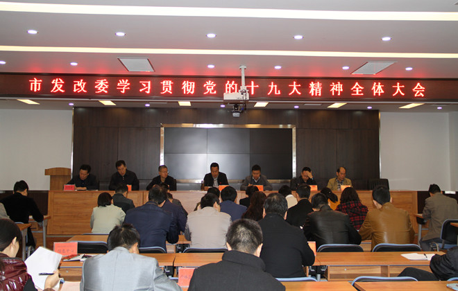 按照党组部署,10月30日上午,市发改委召开学习贯彻党的十九大精神全体大会,对十九届中共中央政治局第一次集体学习精神、市委常委(扩大)会议精神进行了传达学习。委党组书记、主任郝志军同志作了题为《不忘初心使命 主动但当作为 坚决做到把党的十九大精神学懂弄通做实》的讲话,要求全委干部职工要以强烈的政治责任感,把学习宣传贯彻十九大精神,作为当前和今后一个时期的重要政治任务,深入学习领会,搞好宣传发动,抓好贯彻落实,注重统筹兼顾,切实把思想和行动统一到十九大精神上来。